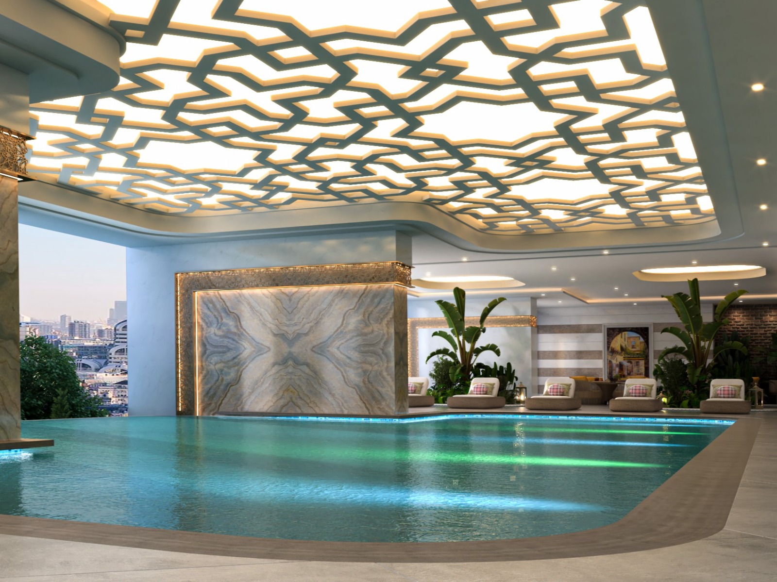 Large pools suitable for individuals and families to unwind.
