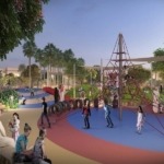 A central forest area houses the Masar Experience Center, a food truck zone, a fully equipped fitness center, a skate park, a children’s adventure playground, and an event space.
